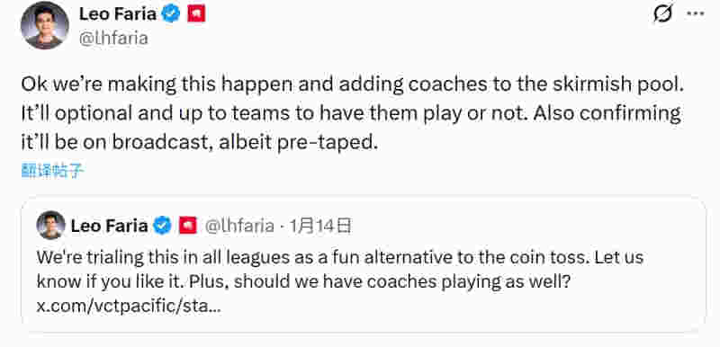日前,VCT高管发文考虑将教练也纳入斗牛名单中: