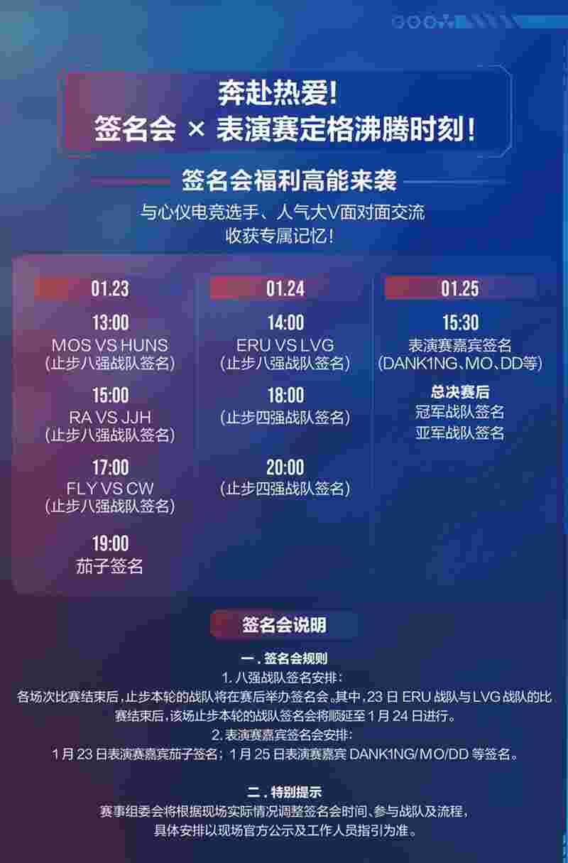 本次签名会将围绕八强战队与表演赛嘉宾展开,具体时间安排如下: