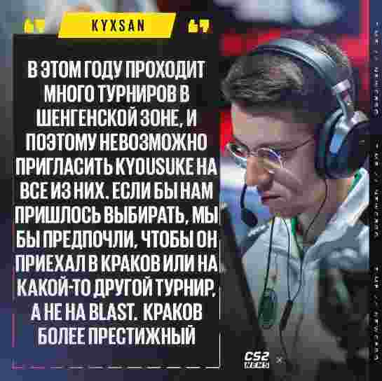 kyxsan在HLTV的采访中被问及kyousuke是否参加IEM克拉科夫2026,他给予了肯定的回答:“今年欧洲赛区的赛事非常密集,我们不可能让kyouusuke参加所有的比赛。如果需要做出选择,我们宁愿让他去克拉科夫或其他赛事,而不是BLAST。克拉科夫的赛事更具声望。”