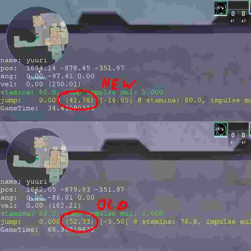 社区玩家们发现,最新CS2更新相较之前,跳跃高度明显降低了。旧版本约有55码,而新版本大约只有43码。