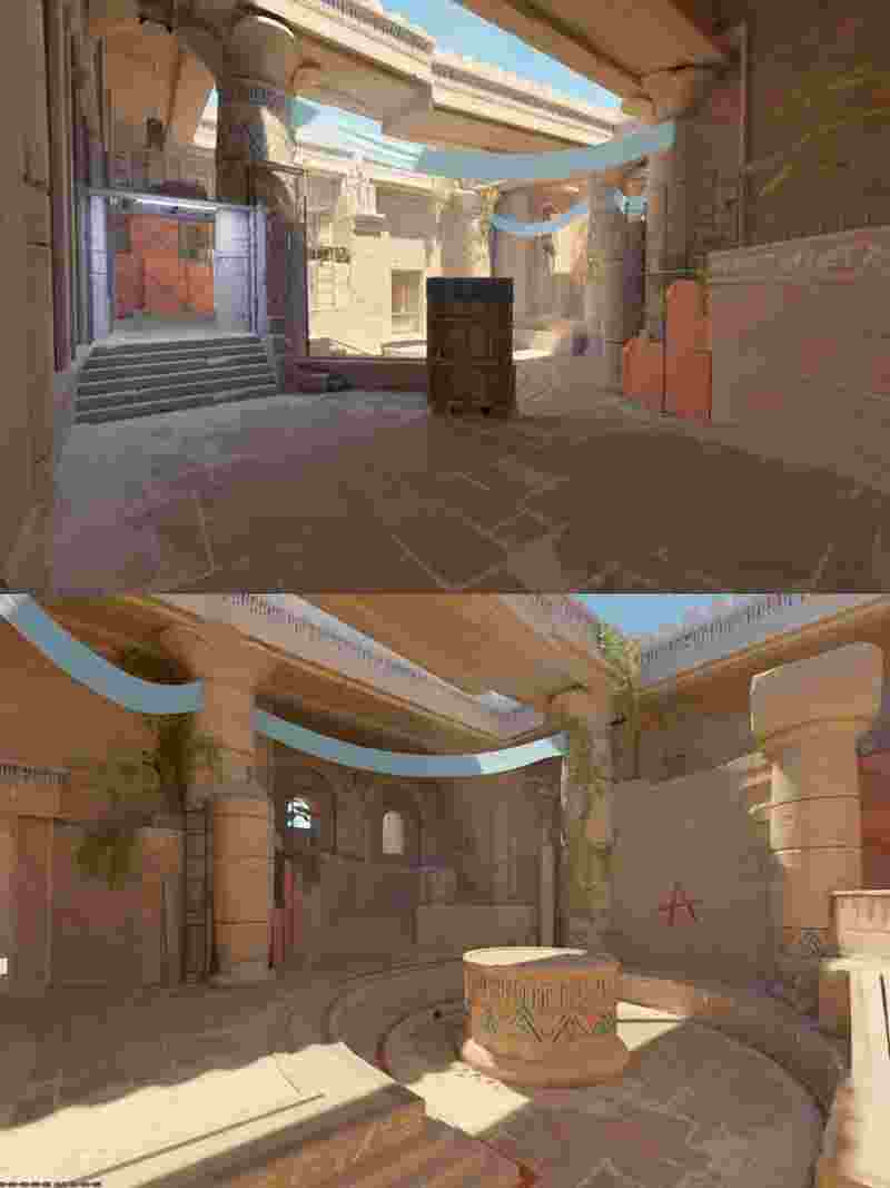 这是本次Anubis改动中最显著也最直观的一处。中路的下跳点现在移到了门外侧,而非正对中路中央。此前,T方可以封烟覆盖该区域并借助掩护跳下,而CT方则必须暴露在中路才能进行同样操作。这对许多CT方玩家而言风险过高,因为一旦被击杀,就会失去地图大片区域的控制权。