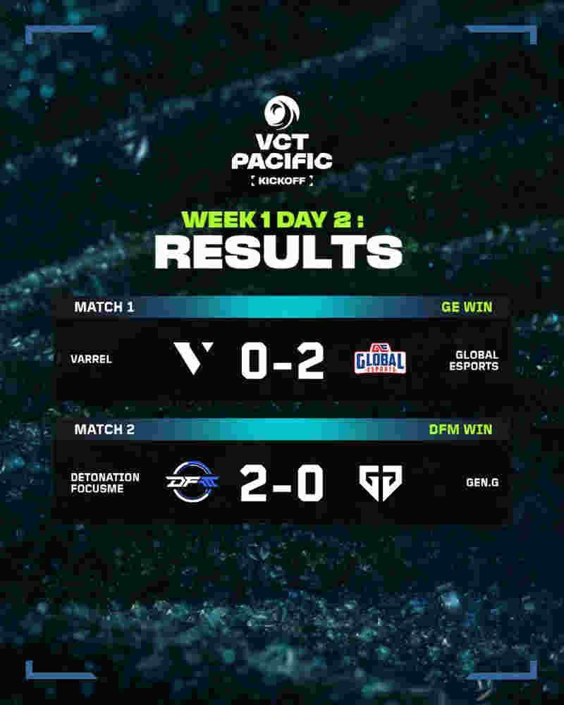 VCT太平洋启点赛次日战况: