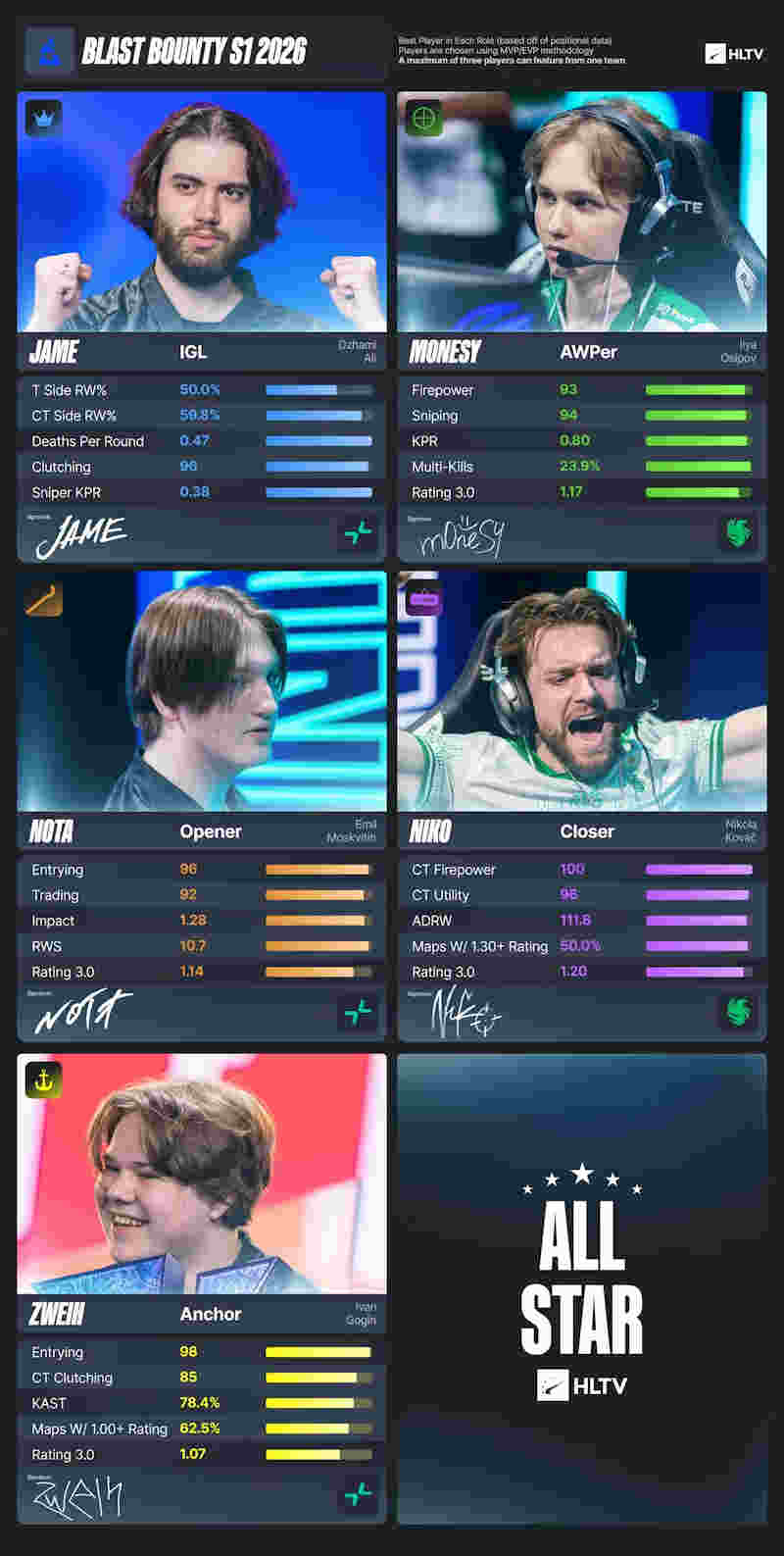 BLAST Bounty 2026第一赛季总决赛最佳选手排名