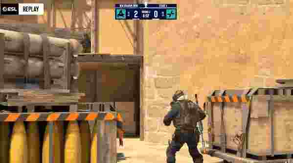 下半场手枪局,土匪摸下水道拱门A二楼夹A进攻,Jame先接拱门Wicadia,BELCHONOKK和xiELO也没枪软拿到击杀,nota兜底完成双杀轻松拿下手枪局。