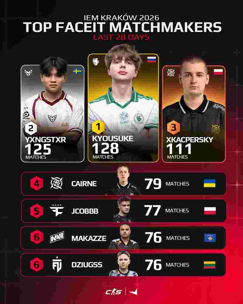 Falcons的步枪手kyousuke在过去的28天内一共打了128场天梯,排在本次所有IEM克拉科夫站参赛选手的首位。