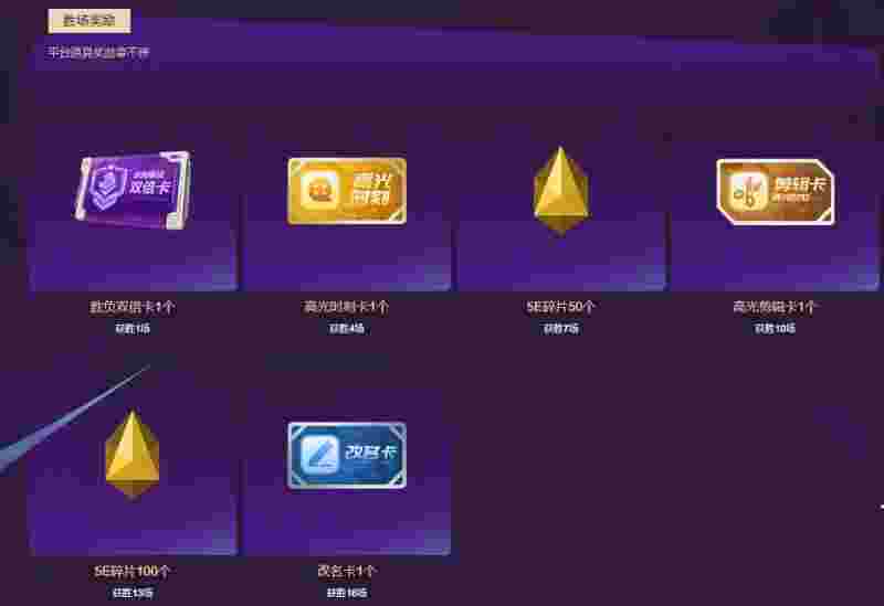 ○获胜4场:高光时刻卡1张(有效期7天)