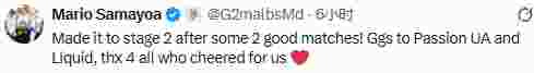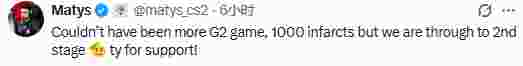 MATYS:“这场比赛简直是G2的企业文化,心脏骤停一千次,但我们还是闯进了第二阶段。感谢大家的支持!”