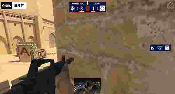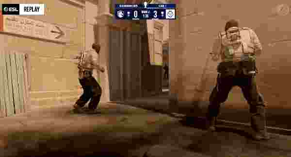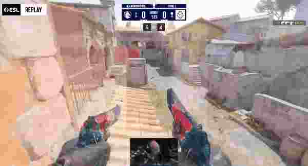 图二为G2选图Inferno,G2先做进攻方。G2手枪局直接打A。,被EliGE A二楼阳台双枪打四个,队友赶到轻松剩下最后一个人头。