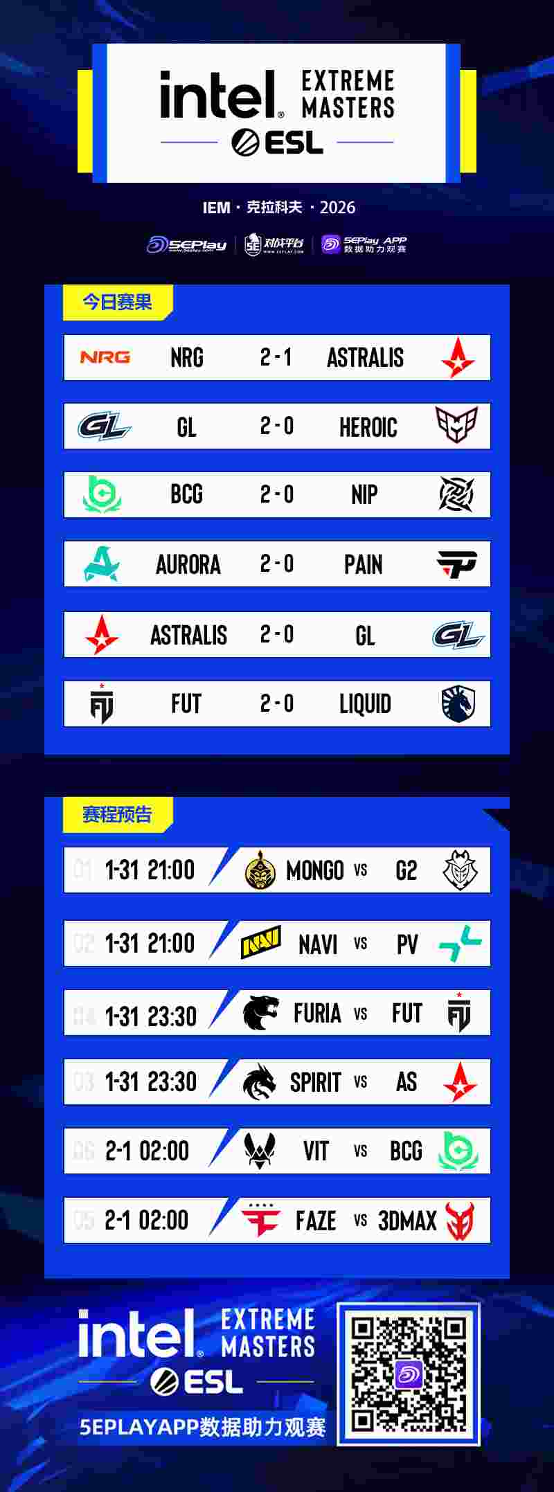IEM克拉科夫第一阶段最终日的比赛已结束,