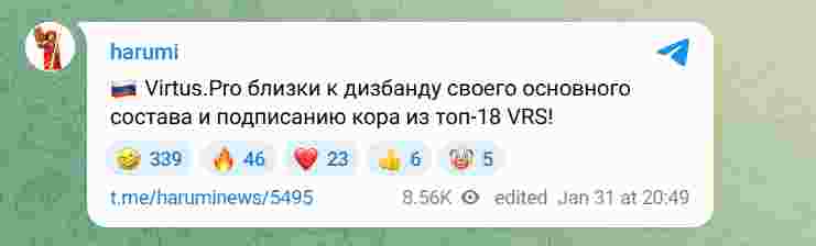 Virtus.proV正在考虑解散其现有的CS2阵容。该战队打算签下由VRS排名前18队伍的核心成员。