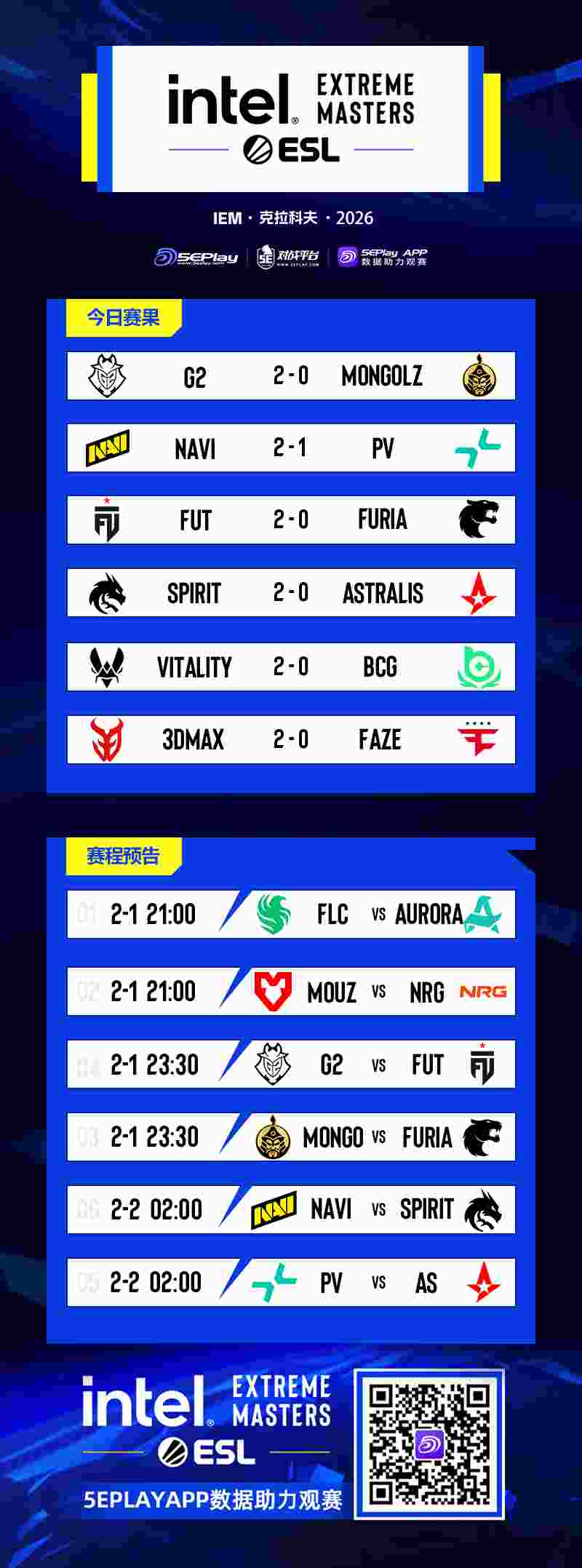 IEM克拉科夫首日的比赛已结束,
