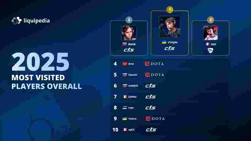 近日,Liquipedia发布了全项目电竞选手的个人主页综合流量统计数据,s1mples1为Liquipedia所有电竞项目个人主页浏览量最多的选手。s1mple以