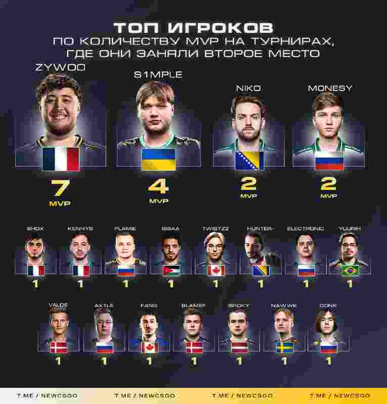 除了上述选手外,shox、kennyS、Twistzz、huNter-、electroNic、donk等选手均获得过亚军MVP。