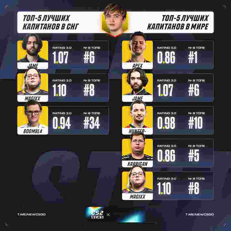 全球:apEX、Jame、huNter-、karrigan、magixx