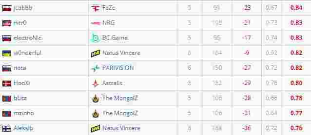 从赛事数据中不难发现,BLAST赏金赛唯一EVP得主nota竟然出现在了克拉科夫正赛阶段rating榜的尾端(0.82暂居倒数第五)。
