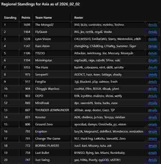 为保证赛事结构完整,我们将依据2月2日的亚洲区积分排名顺延邀请1支队伍加入正赛,使本次亚洲预选赛的直邀队伍达到5支,直邀名单将于明日公布。