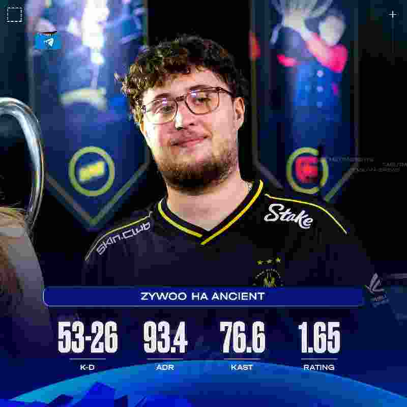 Aurora图一Ancient中,ZywOo发挥神勇,全场拿下53-26 K/D、93.4 ADR、+6.38%回合影响力和1.65 Rating。其中53个击杀为他个人职业生涯单图最高击杀数。最终,Vitality也是以2-0战胜Aurora晋级四强。