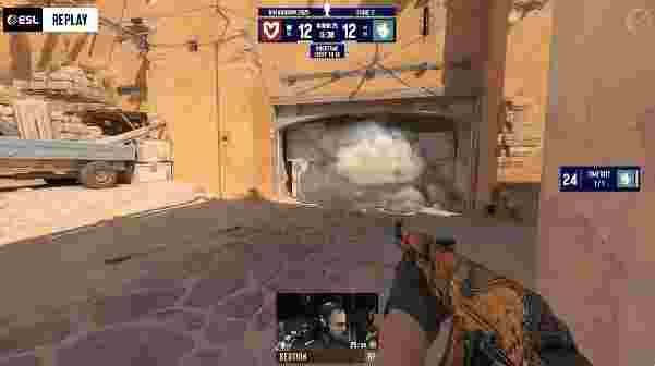 下半场手枪局,土匪选择爆弹B二楼进攻,molodoy先拿首杀后被补,双方一波包点混战来到2V2,土匪成功下包,但回防的卡神直接配合队友拿下双杀挽救局面,FURIA拿下手枪局。