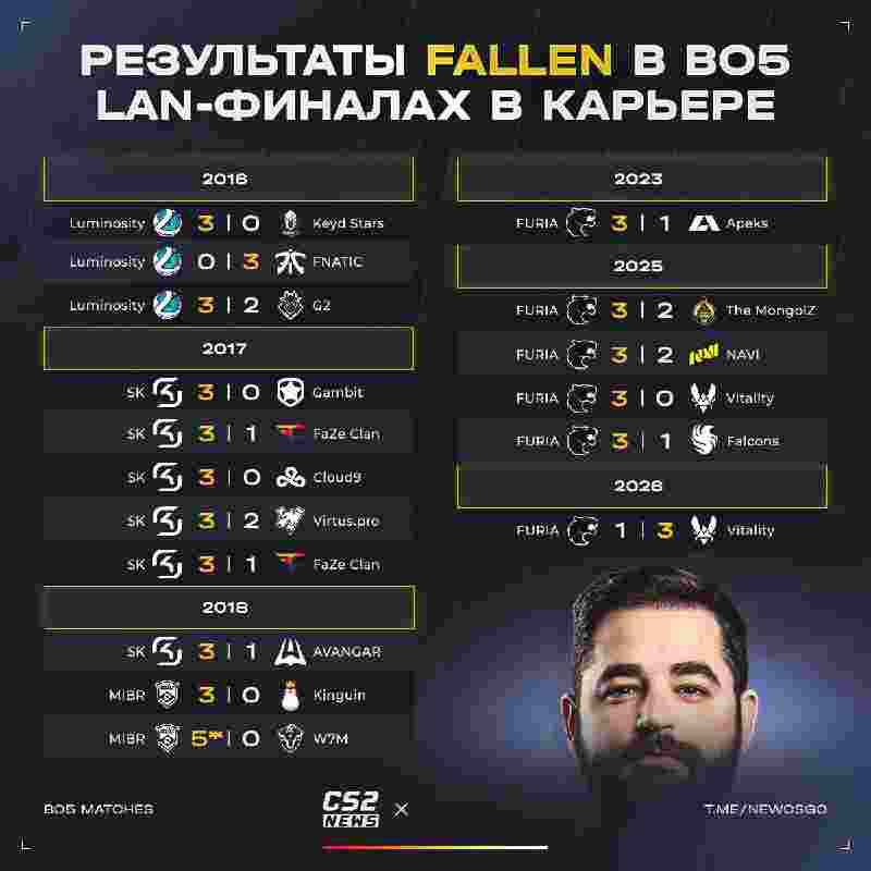 FURIA,FalleN的BO5未有败绩,直至这一纪录被Vitality打破。
