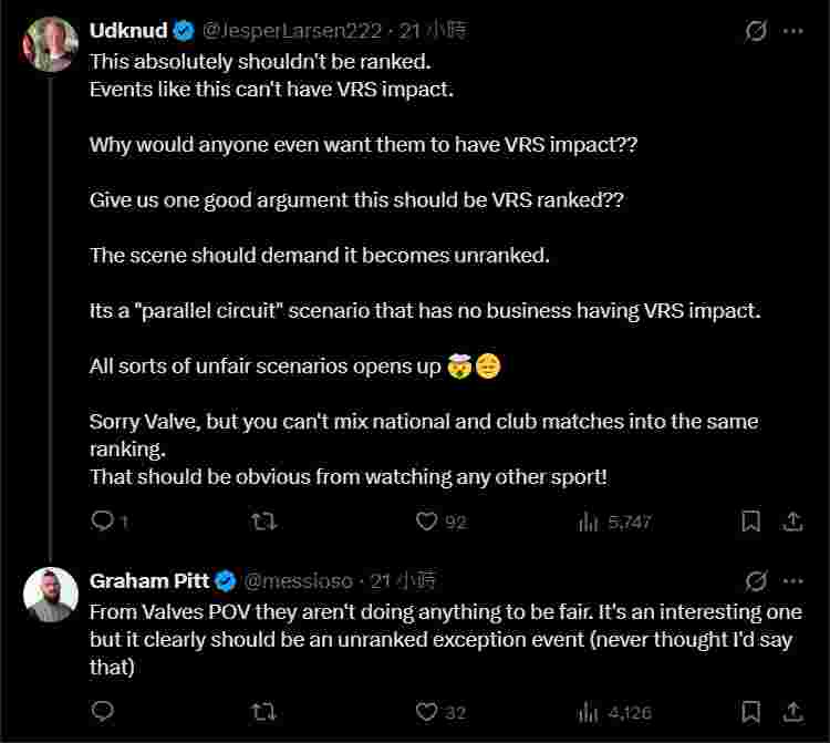 就连通常支持更多赛事计入积分的Graham Pitt也认为:“从V社的角度看,他们保持中立倒也公平……但它显然该列为不计分的特例赛事。” 这反映了社区中一种谨慎的共识:尽管国家杯具有观赏性与荣誉价值,但其特殊性决定了它不应与决定俱乐部核心利益的积分体系直接挂钩。