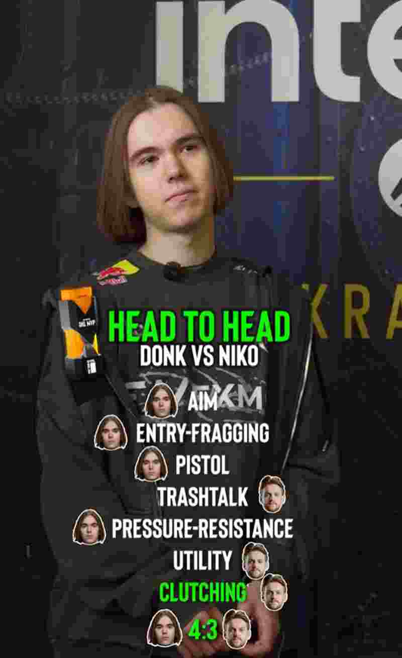 Spirit明星步枪手donk在IEM克拉科夫2026赛事期间参与了一项趣味挑战,他将自己与前“世一步”NiKo进行对比。
