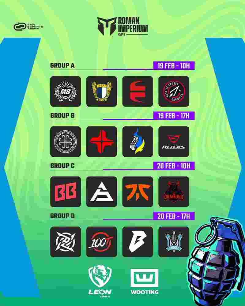 罗马帝国之声杯 第五季主办方已公布本届赛事的完整赛程。比赛将于2月19日至22日在葡萄牙加亚新城的SAW电竞馆举行,16支参赛队伍将争夺冠军荣誉及3万美元总奖金。