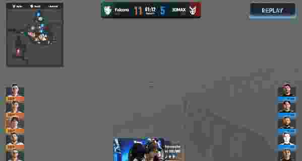 接下来尼尼孩孩接连发挥,Falcons一鼓作气连拿四分,比分来到6-4,Falcons暂时领先。第十一回合,上半场最后两回合,双方互拿一分,半场结束Falcosn 7-5 3DAMX。