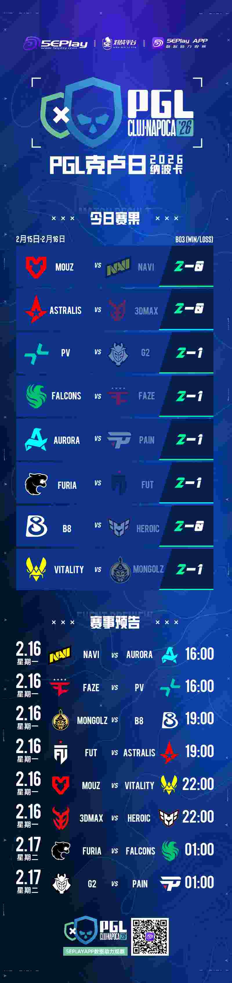 PGL 克卢日-纳波卡2026第二日比赛告一段落,几支豪门战队