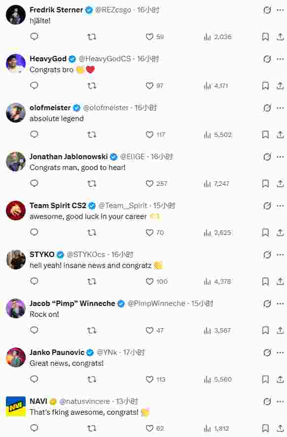 动态发出后,多位职业哥、战队官推以及业内人士前来祝贺这位战胜病魔的英雄。