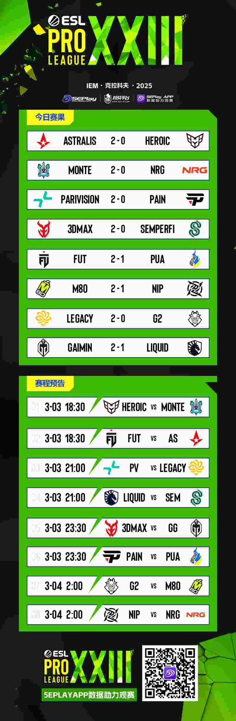 以下为今日赛果和赛程预告:
