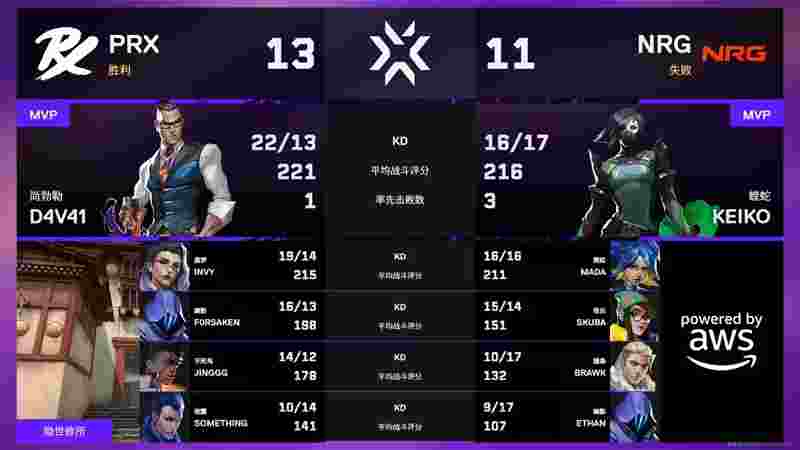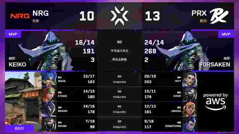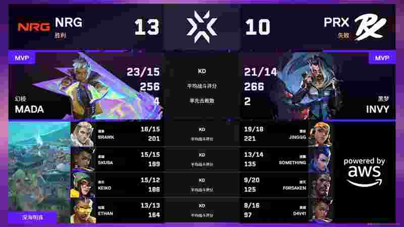 NRG鏖战三图,最终PRX以2-1战胜NRG,成为瑞士轮阶段首支晋级淘汰赛的队伍。