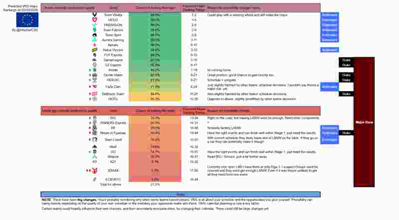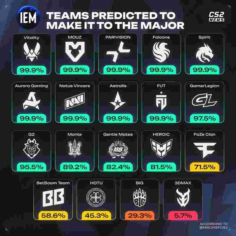 近日,社区VRS爱好者、数据统计媒体MischiefCS2发布了最新的IEM科隆Major欧洲赛区晋级预测,世界前十战队都能稳稳进入科隆Major,只是争夺哪个阶段的问题。