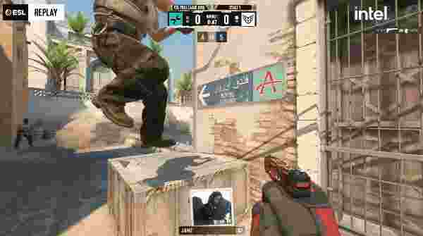 手枪局PV先做进攻,土匪选择A小A大夹击包点,xfl0ud先收过路费,Jame双杀送队友成功下包,随后的双方战成1V1,A小包的Jame游龙拖延时间,最终PV顺利拿下手枪局。