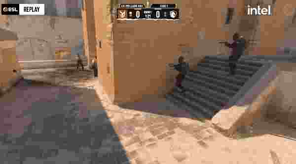 次回合Liquid选择eco但并未能翻盘,来到第三回合长枪局,土匪三人黄房进攻,ultimate拿下双杀,但Ex3rcice配合队友顶死液体的进攻,Graviti收尾拿下比分将对手打入经济局。随后的液体进入得分荒,3DMAX连续拿分,来到第七回合,土匪外场做文章,NAF单摸匪厅取得一换一,土匪四人直接下K1,Lucky管道再接一人后被补,Graviti和队友接上打停土匪攻势,3DMAX继续拿分。来到第九回合,Maka大狙架死水塔NertZ,土匪两人摸黄房,Ex3rcice先杀一人后被补,misutaaa三楼补枪再次打停土匪攻势,EliGE和ultimate进攻正门都被Graviti打掉,3DMAX再拿一分。随后的Liquid终是在第十一回合拿到第一分,上半场最后一回合,土匪集合黄房进攻,Ex3rcice先被接下,Maka大狙接一人,土匪成功下包一波混战形成3V2,misutaaa回防神兵天降拿下三杀扭转局面,半场3DMAX 11-1。
