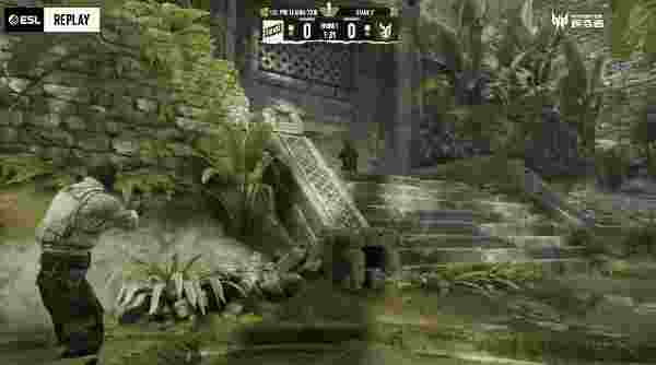 下半场手枪局,土匪选择中路夹A进攻,iM先拿首杀,makazze混烟再打一人,土匪攻势被打停选择转B下包,Ex3rcice看后路拿到一换一,教堂两土匪被烟雾弹挡住,CT直接雷钳强拆拿下手枪局。