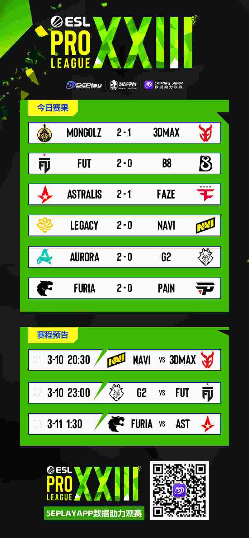 FUT,状态开始回暖的FURIA也将迎来Astralis的挑战。