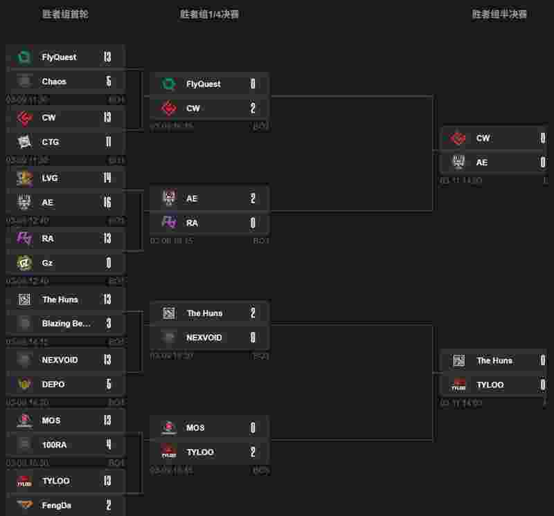 而在另一边的胜者组,先斩LVG再擒RA的AE,对阵坐拥HLTV明日之星榜第38 tikuak的CW。CNCS老大哥TYLOO对阵蒙古二哥The Huns。