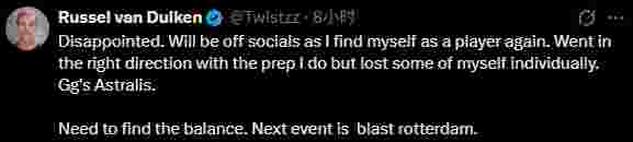 赛后FaZe选手Twistzz对于赛果和个人状态发布了动态,表示将在找回个人状态前停用社交媒体。