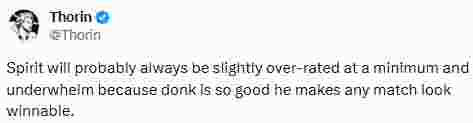 “Spirit可能总是会略微被高估并且无法达到预期,因为donk实在太强了。以至于因为他,任何比赛看起来都像是能赢的。”