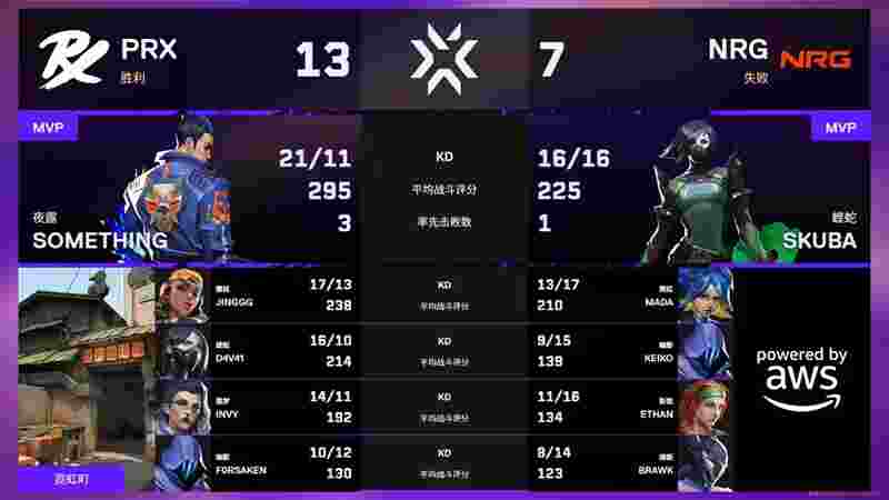 上半场开局双方战成3-3平。第7回合,PRX提速进攻A点,成功拿下NRG重防的区域。PRX随后打出一波三连胜,NRG凭借顽强韧性追回些许分数。上半场PRX以7-5领先。