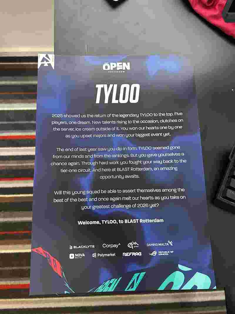 TYLOO战队已经抵达了鹿特丹,让我们一起看看主办方给TYLOO的邀请函吧。