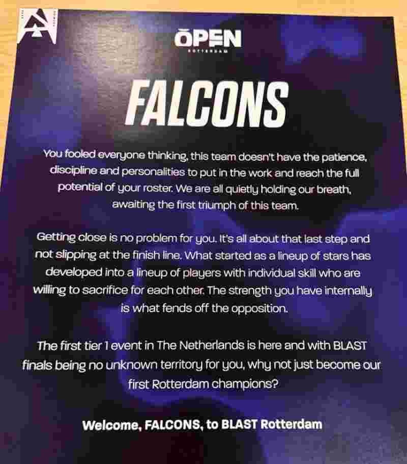 Falcons将于明日18:00在BLAST鹿特丹首轮对阵