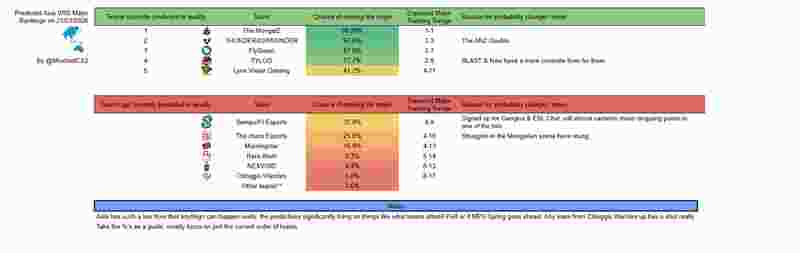 今日VRS分析师Finn更新了亚洲和欧洲各队晋级科隆Major的概率。