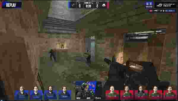 PV先做进攻方,手枪局四人静摸B斜坡,不料被sh1ro前压发现拿到双杀,donk赶回后再拿双杀,Spirit先拿一分。