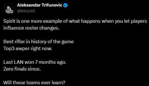 Spirit在BLAST鹿特丹公开赛出局一事发表了评论。
