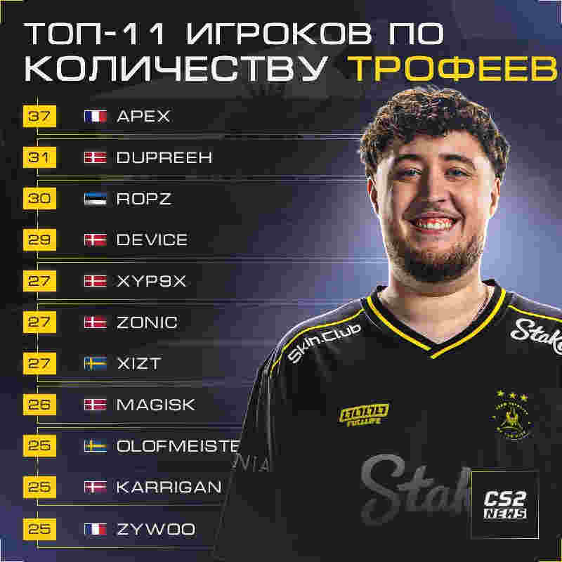 如果ZywOo在下一项赛事中夺冠,他将升至历史第8-9位。