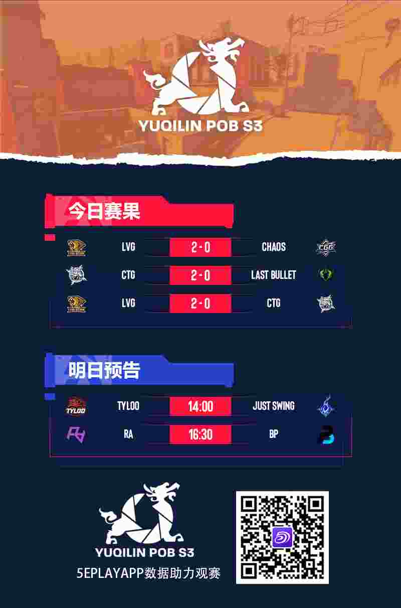Yuqilin POB S3小组赛首日比赛已结束。在今天的比赛中,A组胜者组首轮