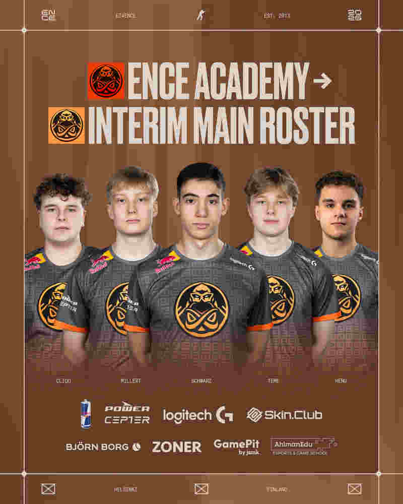 ENCE官方宣布,已将四名青训队选手上调至主队阵容。俱乐部在X官方账号上表示:“ENCE青训队将暂时成为ENCE主队阵容。”