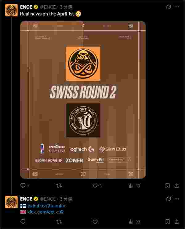 ENCE在截至发稿前3分钟,还特意在推特上声明:虽然是4月1日发布的新闻,但这是真消息,不是忽悠人的。