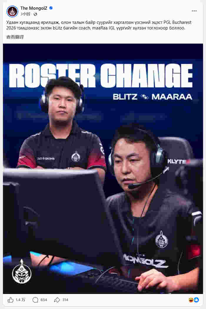 The MongolZ俱乐部在其社交平台发文宣布:经长期商议并综合考虑多方立场后,自PGL布加勒斯特2026起,bLitz将担任队伍教练,maaRaa将接任指挥一职。
